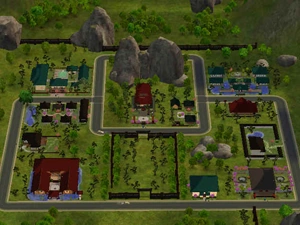 Aldea Takemizu es uno de los tres destinos vacacionales disponibles que se introducen con el disco de expansión Los Sims 2: Bon Voyage. Posee como temática el lejano oriente, por lo tanto, sus hoteles y lugares por visitar tienen un estilo japonés. Algunos ninjas aparecen a veces pero casi no pueden ser vistos por la rapidez en el que se teletransportan. En el caso de que se llegue a interactuar con uno de ellos, se le puede pedir que enseñe su habilidad de teletransportación, pero el Sim deberá contestar correctamente una pregunta de Ninjas.