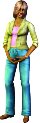 La única manera de que ella tenga la textura de forma física para Sims delgados sin hacks es hacer que coma en exceso hasta que se ponga en forma gorda, y luego hacer que haga ejercicio hasta que esté delgada nuevamente. Esto también sucede con muchos otros Sims prefabricados en Los Sims 2.