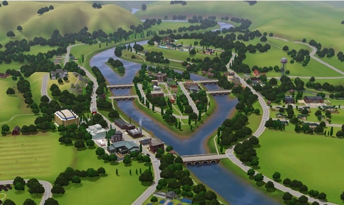 El centro de la ciudad está construido principalmente en torno a los objetos de la colección "El vendedor emprendedor", como forma de muestra, que se incluye con el mundo, donde los Sims pueden poseer y operar sus propios negocios y quioscos.
