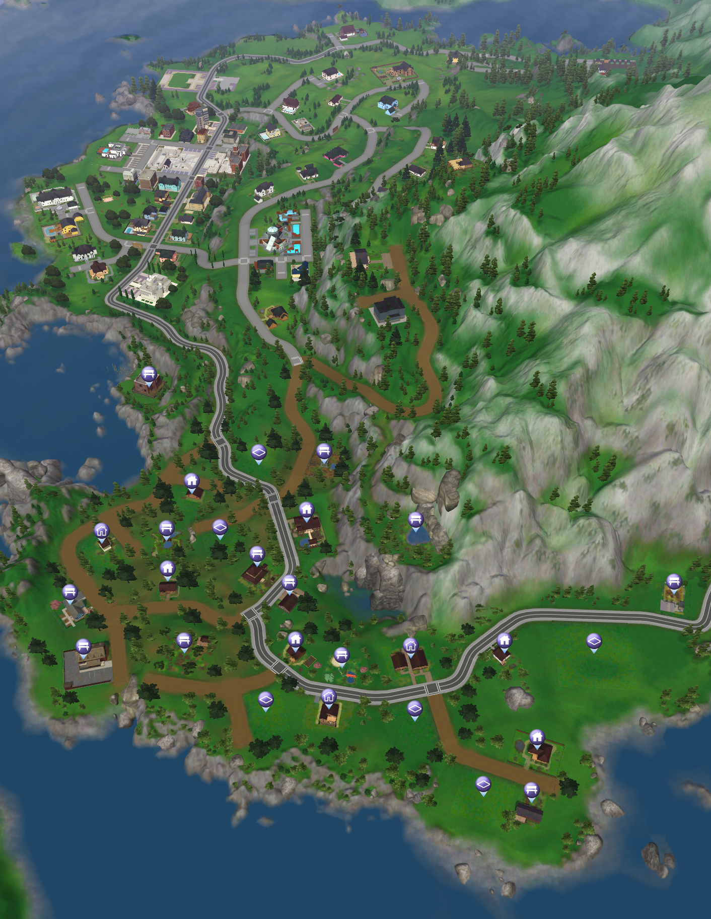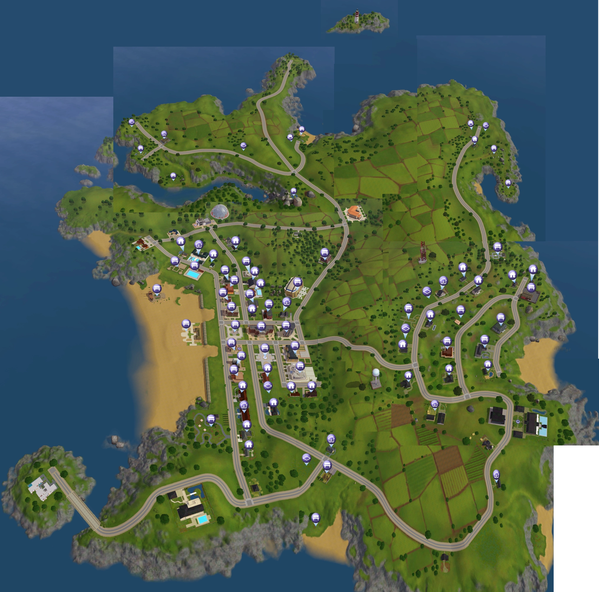 Basado principalmente en los atolones del océano Pacífico. Un lugar que a los Sims residentes locales les gusta por sus zonas para nadar, spas con sauna, cocoteros (no cosechables) y al menos un volcán.