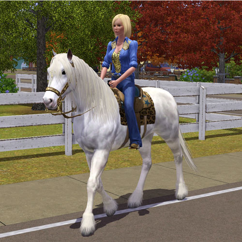 - En ville, on peut trouver des cavaliers sur des chevaux galopant et se promenant. Certains Sims vont même au travail à cheval, le cheval attend et à l'heure de sortie, le Sim trouve son cheval sur le pas de la porte qui l'attendait ! Les cavaliers lient un lien très fort avec leur monture et vont partout : camper près de la grande Cascade, pique-niquer à la plage, faire la course avec un autre ami cavalier de la maison jusqu'à la librairie et encore plus...