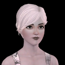 - Comme tous les Sims décédés de Bridgeport, elle a la peau mauve et les cheveux gris.