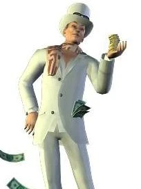 Tout au long du jeu, il va chez tous les habitants de la ville tel un huissier pour éponger les dettes que ces Sims ont envers lui en emportant des objets.
