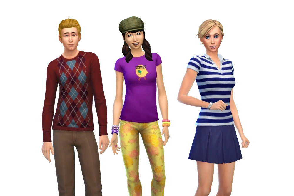 - Ze delen hun namen en uiterlijk met drie Sims uit de MySims-serie: Travis, Summer en Liberty. De naam van hun huis, Essentiële Tuin, is een verwijzing naar een spelmechaniek die voorkomt in veel delen van de MySims-franchise.