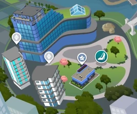 De wijk bevat twee appartementsgebouwen en een penthouse. Twee appartementen worden bewoond door de Pizzazz familie en het Karaokelegenden huishouden. Daarnaast is er een karaokebar genaamd Planeet Honingknetter!. In de wijk kunnen Sims eten halen bij de eetkraampjes of deelnemen aan een van de twee festivals.