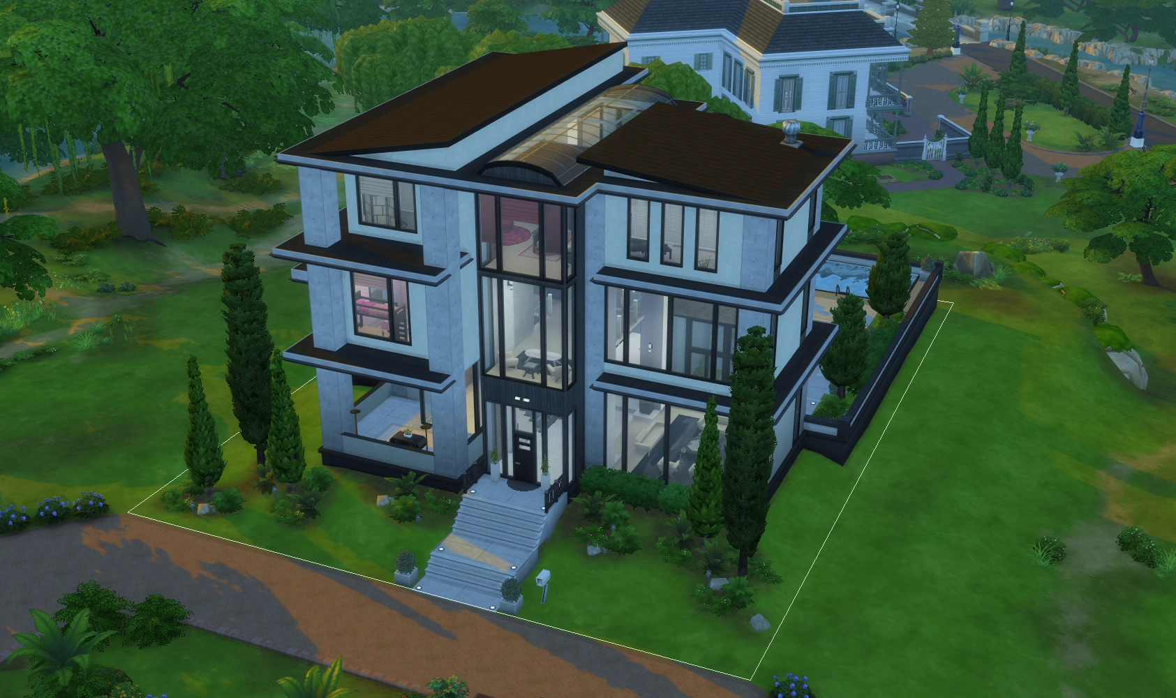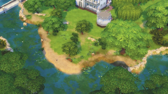 Het Eikenhuis is de grootste kavel in Willow Creek. Dit landhuis in zuidelijke stijl heeft veranda's, balkons en zelfs een prieel in de achtertuin. De kavel wordt aan drie kanten omringd door water en biedt geweldige visplekken, evenals veel plekken om verzamelvoorwerpen te ontdekken. Het natuurlijke landschap geeft dit landhuis een afgelegen en rustige uitstraling.