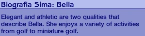 - Jej biografia, którą można przetłumaczyć jako Elegancka i zgrabna. To cała Bella. Z dużym zacięciem angażuje się w różne formy sportów od szachów po brydża.[nt], pochodzi z pierwszej części gry.