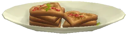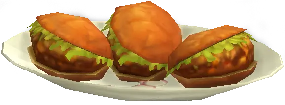 | Obraz | Poziom | Jedzenie | Składniki | Koszt | Podanie | Źródło | Notki | Gra |