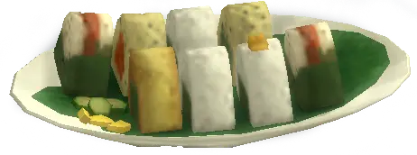 | 4 | Sushi | Dowolna ryba | §5 | Obiad | Umiejętność | Nie wymaga gotowania. | ||