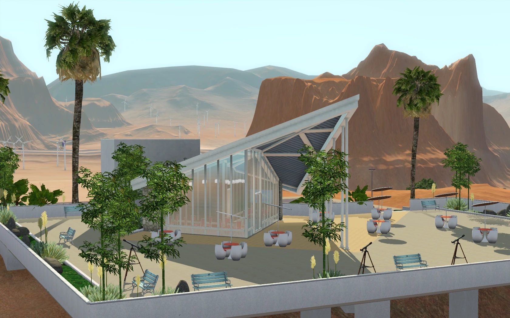 Połączona została z centrum biznesowym. Zapewne pracownicy idą na przerwę obiadową do tego miejsca. Za budynkiem znajdziemy kominek, stoisko dla barmana oraz fontannę. Z tego miejsca można podziwiać słońce chowające się za horyzontem.