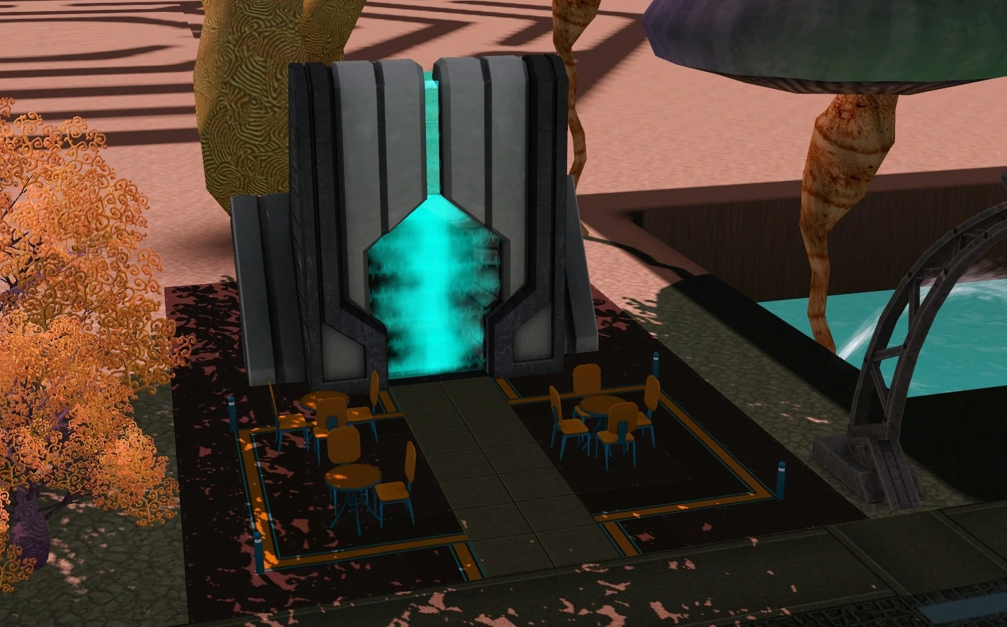 Podobnie jak inne parcele, restauracja pojawia się w postaci portalu. Może on prowadzić do innego wymiaru lub do podziemi, w których znajduje się konkretny lokal. Przed obiektem znajdziemy stoliki i krzesła. Lokal umiejscowiono przy Zachodniej Drodze Gwiazdowej 174.