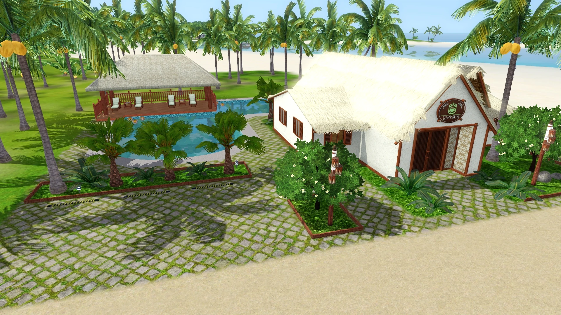 Spa ulokowano na sztucznej wysepce, otoczono je ze wszystkich stron wodą. Znajdziemy je nad samym brzegiem rzeki w Oazie Szczęścia. Dookoła budynku posadzono palmy, a przy wejściu do salonu umieszczono dwie wysokie fontanny.