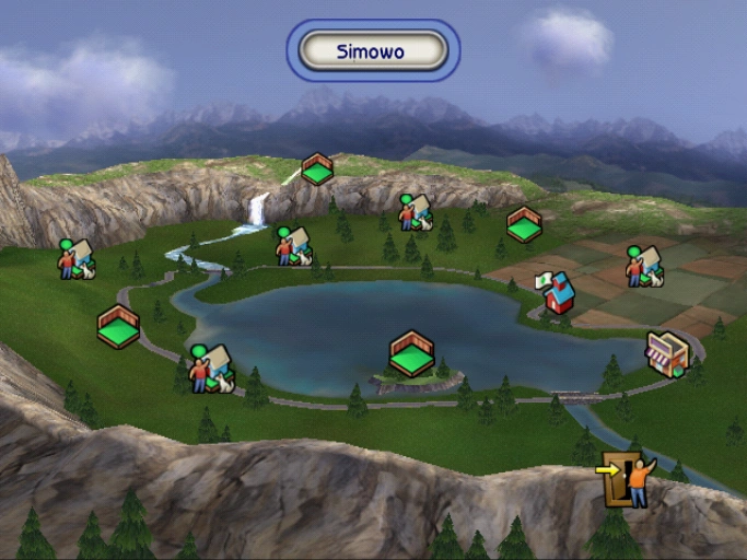 Znajduje się wokół sporego jeziora, które można zobaczyć w oddali na każdej parceli. Podczas gdy wschodnia część otoczenia rozciąga się na równinnym terenie, zachodnia i południowa część Simowa jest położona w górach.[TS2ZK] W wersji na konsolę PlayStation Portable widoczna jest jedynie północna część otoczenia.