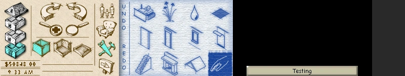 - Ściany – pozwala na budowę ścian; podobnie, jak w późniejszej wersji The Sims 2, przeciągając ścianę, gra pokazuje jej długość;