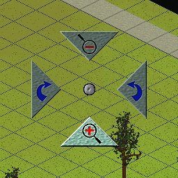 Wciśnięcie prawego przycisku myszy pokaże menu widoku, dzięki któremu można obrócić kamerę, a także przybliżyć lub oddalić widok. Klikając prawy przycisk myszy ze wciśniętym klawiszem Control pokaże power users control menu (menu kontrolne dla użytkowników zaawansowanych), które obok możliwości przybliżania i obracania kamery, pozwala również na zmianę trybu oraz aktualnie wybranego Sima.