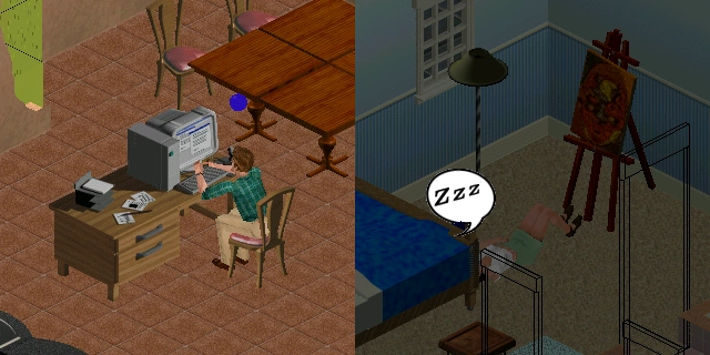 W tej wersji nie było jeszcze wprowadzonych dymków pojawiających się nad głowami Simów, które informowałyby o zmianach w relacjach między Simami.