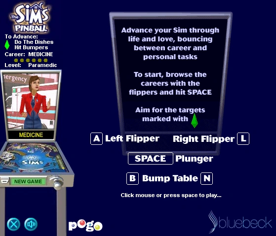 The Sims Pinball przypomina grę Full Tilt! Pinball, na której była bazowana, lecz zawiera dodatkową zawartość, jak kariery i cele. Po uruchomieniu gry, na ekranie pojawi się instrukcja sterowania oraz komunikat:
