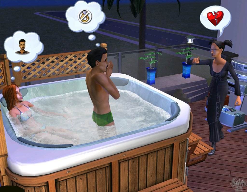 Um caso extraconjugal (ou uma traição) acontece quando um Sim em relacionamento amoroso com outro interage romanticamente com um terceiro Sim.