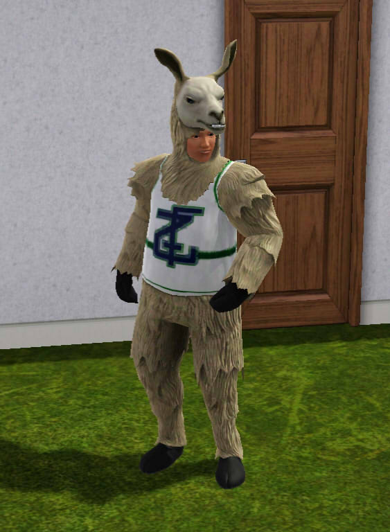 Mascotes lhama sempre aparecem vestidos do animal e seus rostos nunca são mostrados até que retirem a fantasia. Eles tendem a invadir lotes residenciais ou repúblicas sem ser convidado e se aproximar do Sim controlável mais próximo para fazer a saudação da escola. Depois de terminar a saudação, as mascotes continuarão no lote como convidados normais e normalmente passarão seu tempo estudando ou fazendo suas lições de casa (e abandonando-as incompletas). Tendem a ir embora caso fique muito tarde e nunca aparecem durante a noite.