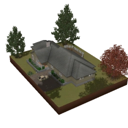 Em seu exterior há várias plantas pequenas, porém há apenas uma árvore no lote. Há duas vagas de carros (no início do jogo apenas uma está ocupada), dois divãs, churrasqueira e uma mesa de piquenique.