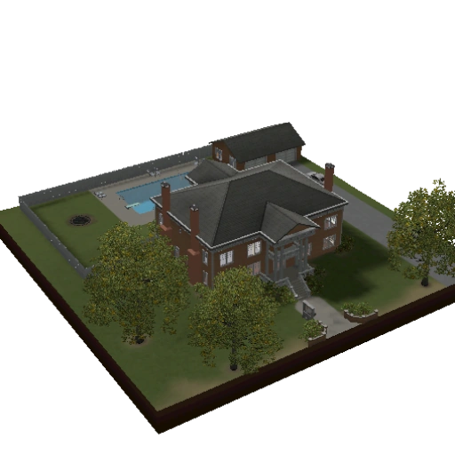 Na fachada da república, encontram-se florarbustos e arbustos chifres-de-veado. Aos fundos, há duas vagas de estacionamento no exterior com carros caros, uma garagem coberta com uma vaga de estacionamento e um quintal cercado com piscina, espreguiçadeiras, fogueira e chifres-de-veado.