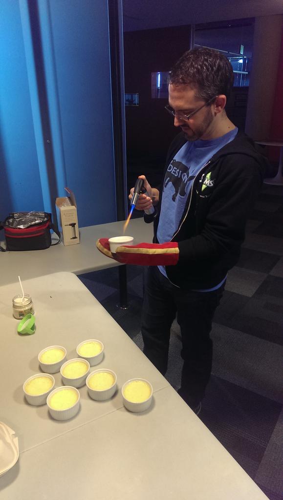 - ↑ John Berges on Twitter: "Breaking news, @SimGuruDaniel is making creme brulee for us at 9:30 in the morning (em inglês) Último acesso em 27/11/2014.