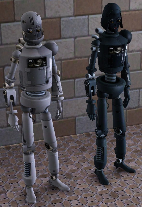 У этих игровых существ два глаза вместо одного глаза, похожего на камеру, как у сервороботов и более роботизированный, менее обтекаемый вид. Это согласуется с убеждением, что действие The Sims 3 происходит за 50 лет до The Sims 2 и за 25 лет до The Sims, и привело к предположению, что симботы являются прототипами сервороботов. Сервороботы из The Sims 2 появляются в виде золотых статуй в научных институтах. Симботы могут быть мужчинами и женщинами.
