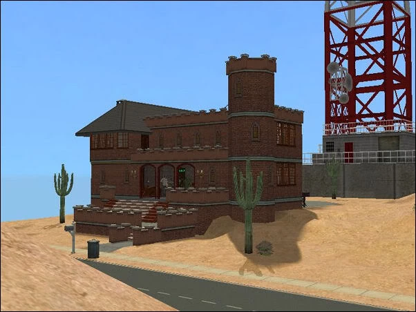 1 Tesla Court is a residential lot in Strangetown where the Beaker family resides. It sits near the rim of the crater which contains, and may have been formed by, a crashed UFO. There is a basement which serves as Nervous's room. Oddly, it does not have a ceiling. The first floor has the kitchen and dining area, a bathroom, a living area, and what appears to be Loki and Circe's lab, where they perform their experiments. It contains The Eclectic and Enigmatic Energizer, a TraumaTime "Incision Precision" Surgical Training Station, a SimSanto Inc. Biotech Station, a SensoTwitch Lie Finder, and a SimVac. The second floor has two bedrooms, each with a double bed. One is obviously the master bedroom. There is a full bathroom, a bathroom that has only a toilet and bathtub, and a half-bath. There are stairs which lead to a small deck that has an inexpensive telescope, possibly due to Loki and Circe's love of knowledge.