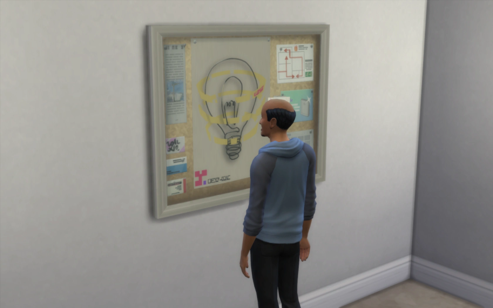 In San Myshuno only, apartment buildings have a bulletin board that can be used by Sims. They are usually used as a way to check out the latest festival and to leave either a passive-aggressive note or an affirming note based on the Sims' mood. Neighbors will occasionally leave notes on the board that Sims can read. If a Sim reads a note left by their neighbor, a notification will appear telling the notes content and the Sim will gain a happy moodlet.