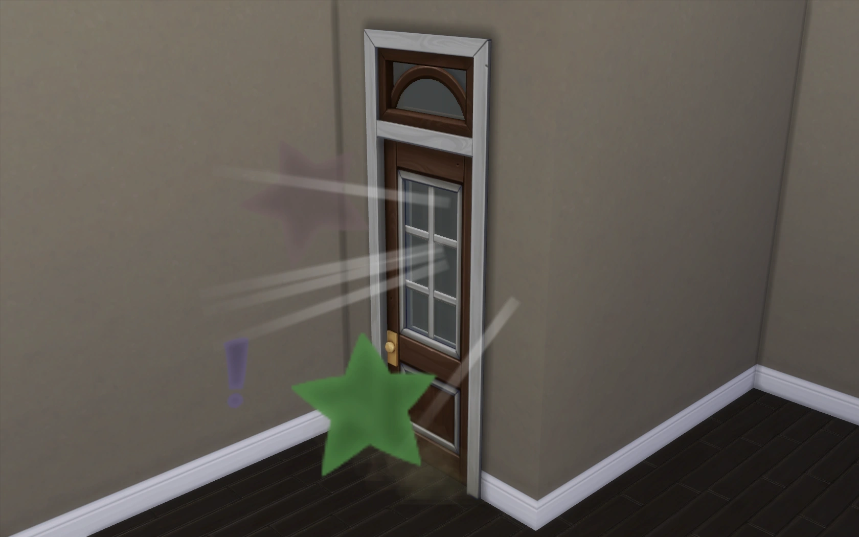 A Sim pounding on a neighbor's front door in response to noise.