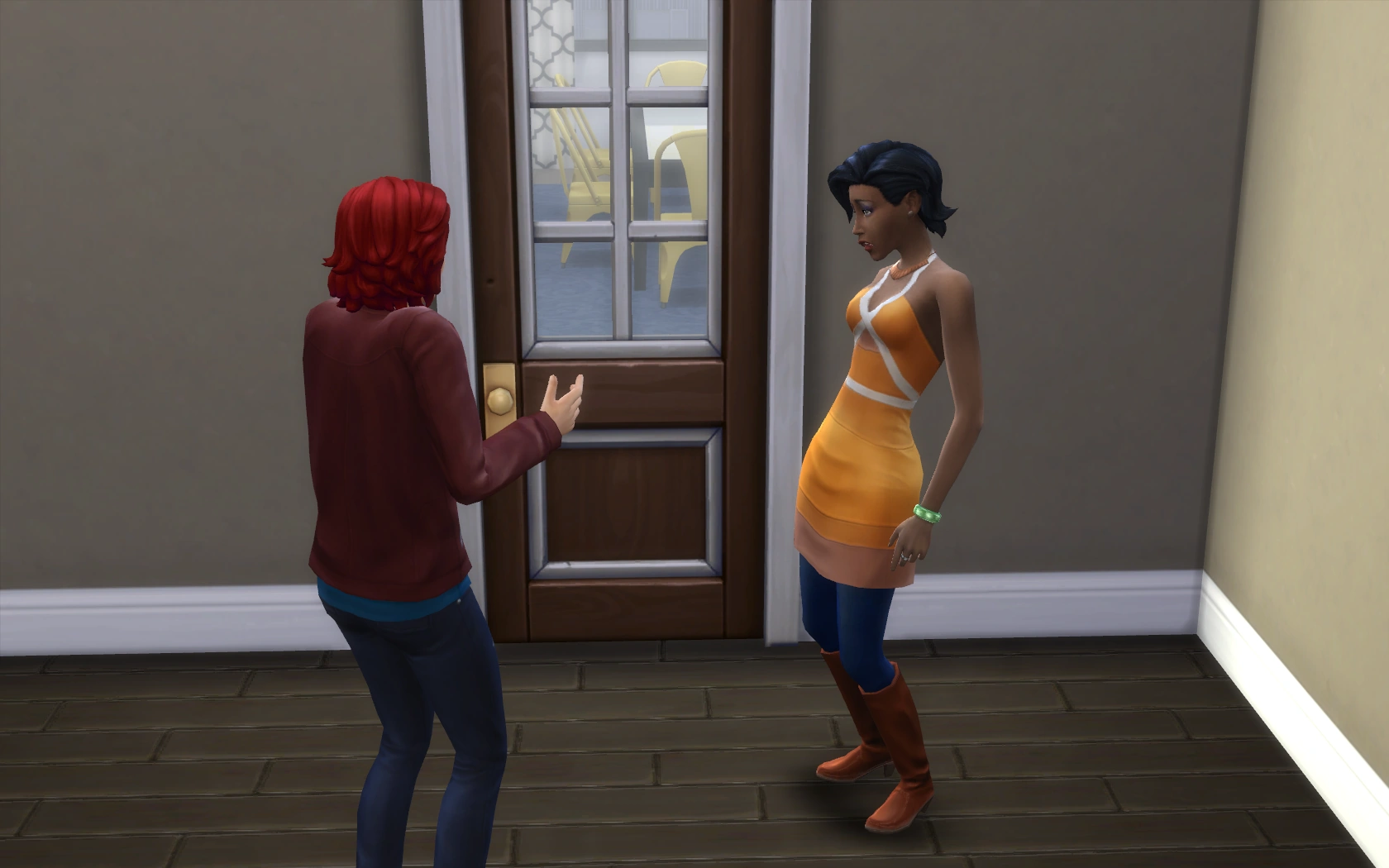 - If all of the members of the household are inside the apartment, neighbor Sims will come in and introduce themselves.