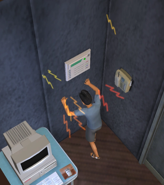 A fire that occurs in an apartment building will be noticed by Sims living in the building. When a fire breaks out, Sims will leave their apartments, then panic. They will not gather around the fire, unlike on normal residential lots and some Sims in the household will immediately extinguish the fire. If there is a toddler or infant in the apartment, an older Sim will carry them out.