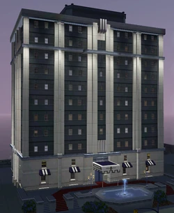 Aquarius is a club located at 1500 Bayshore Highway in Bridgeport,[1] the Neighborhood that is included with The Sims 3: Late Night. It is located at the top of a Skyscraper[1] and has been described as being "posh." It has a Hot tub[1] and a large pool on the roof, as well as recliners. The lower floor has a bubble bar and digital aquarium. Both floors each have a bar.