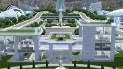 The Community Living Center is the default base camp for Oasis Landing, also has five floors. It includes many furnitures for Sims, especially the time portal that is on the fourth floor. It has an excellent view of the city hall and also one of the largest buildings.