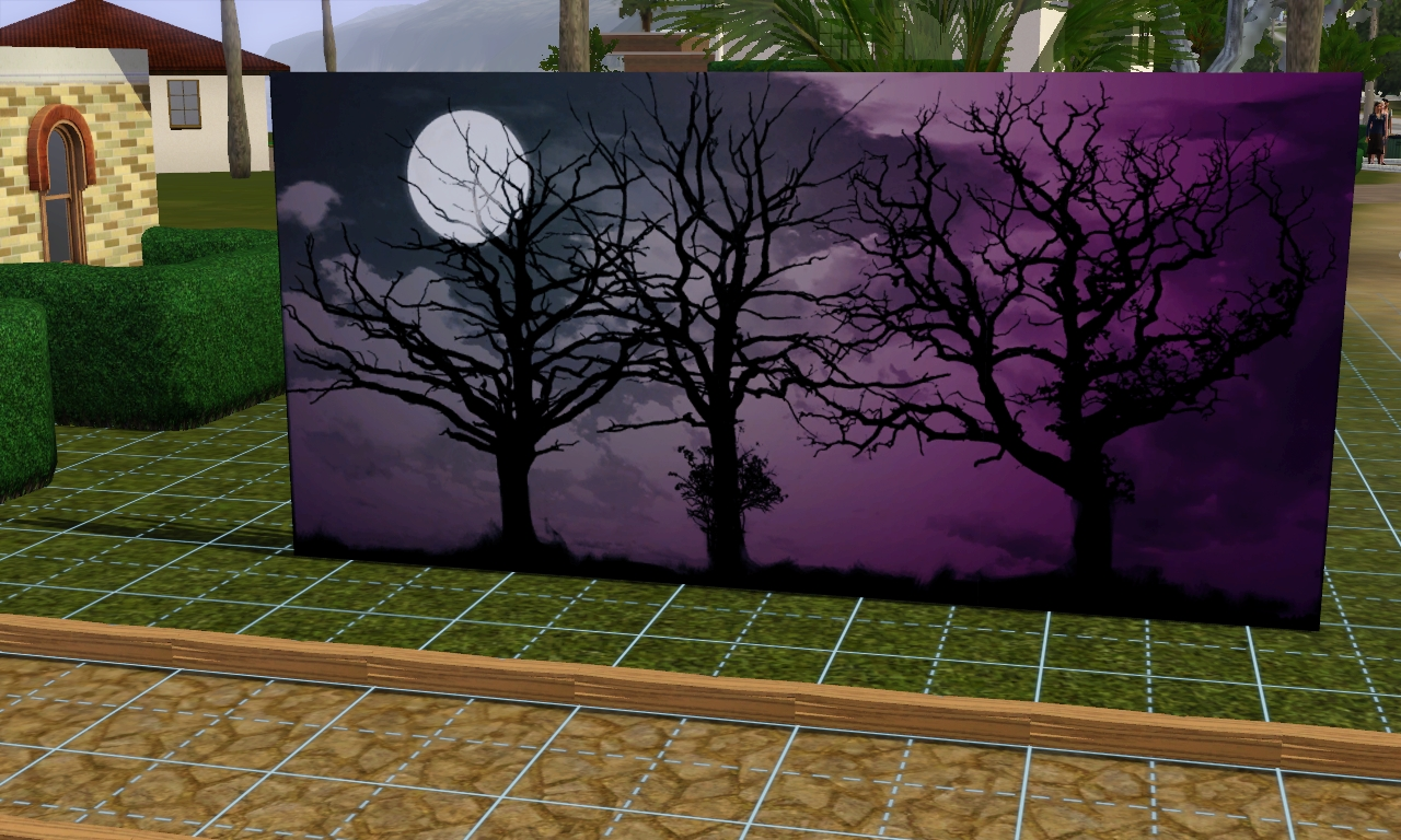 - Painting: When a Sim paints a small painting, one possible picture they can create is of Bella, wearing her signature red dress and with her back turned, near Cassandra, who is in the white shirt and blue pants she wears in The Sims. They appear to be among the gravestones (which makes sense for the Goth family), although it is hard to be sure because the picture is painted and textured. A large painting, which is the one above Mortimer's bed in The Sims 2, can also be painted. Another large painting includes a couple on a balcony. The man wears a suit, and the woman wears an elegant red dress, which indicates that they could be Mortimer and Bella.