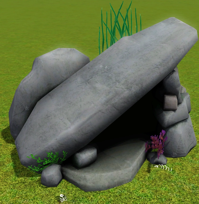 The underwater cave works as a portal in the diving areas of Isla Paradiso, and some of the portals can only be accessed if the Sim has sufficient scuba diving skill. Some portals will connect to another cave in the same diving area, while others may send Sims to a particular spot, similar to dive wells. A cave object can only be placed on the seafloor of diving areas.