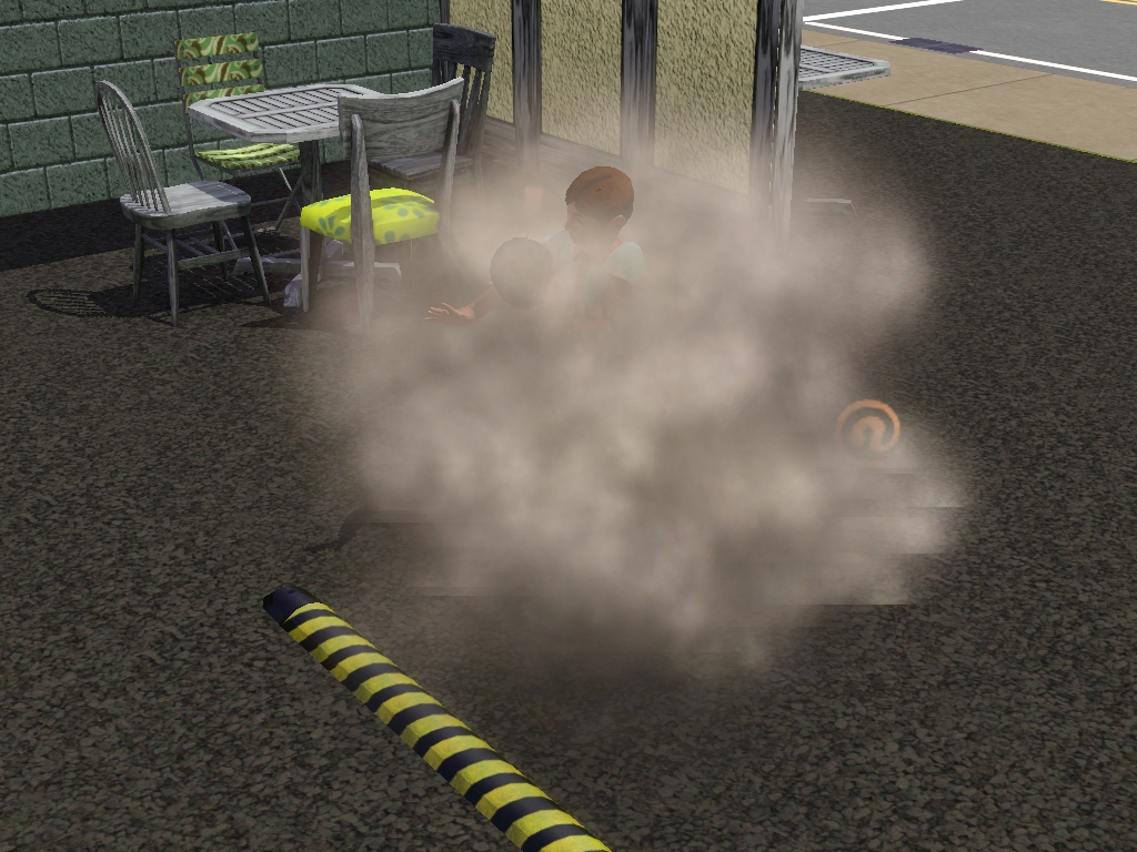 In The Sims, the cloud of smoke will completely obscure the fight. If an adult Sim loses a fight, they may leave the neighborhood forever and cannot be brought back. In the base game, children can also have fights, but they will never leave town if they lose. Their ability to fight was removed in later expansions.