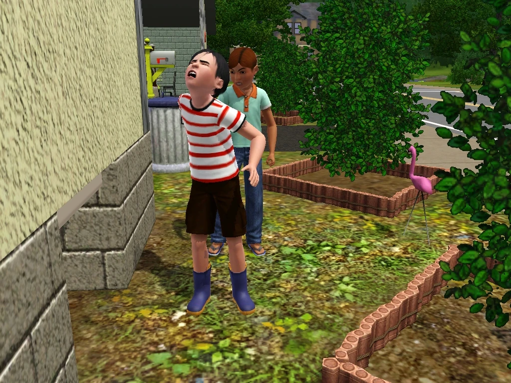 When a fight breaks out, nearby Sims' reactions to the fight will be based on their personality. Mean Sims will taunt the fighters, nice Sims will watch distressed, and shy Sims will run and hide.[n 1] If the Sim is a parent of one of the fighters, they will watch distressed, even if they are mean; likewise, if the Sim is a child of one of the fighters, they will always run from the room, usually to their bed, and cry or throw a tantrum. Selectable Sims in the area of the fight will have the "Watch Fight" interaction pushed on them. The player can cancel this, but it may be pushed on the Sim again.[n 2] If one Sim cheers for a certain Sim in a fight, they are more likely to win. Sims with 6 or more nice points will always watch distressed even if they have a good relationship with one of the fighters.