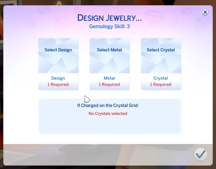 Gathering crystals is not necessary to start creating. However, crafting a piece of jewelry or cutting a gemstone is partially free of charge if the materials are owned. Otherwise, Sims will be automatically charged. The only exception to this are rare Crystals which need to be found in nature or ordered online. Nonetheless, Sims will still be charged for the design.