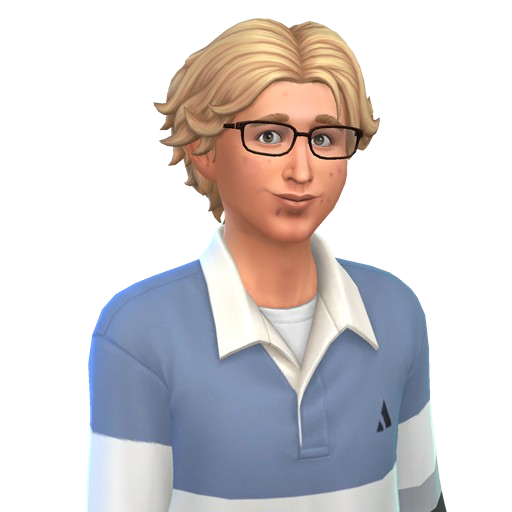 Prior to the release of The Sims 4: High School Years, The Sims released promotional images of base game adult and young adult Sims as teens, which included Geoffrey. A Twitter post promoting The Sims 4: High School Years shows Geoffrey as a teen and reveals that in this timeline, he had the last name Osteer before he married Nancy.[1] This was the first time his family name was revealed.