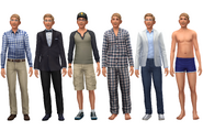 Geoffrey appeared in the official launch trailer, but with dark blond hair. In the official release, his hair color is closer to that of his The Sims 3 counterpart.