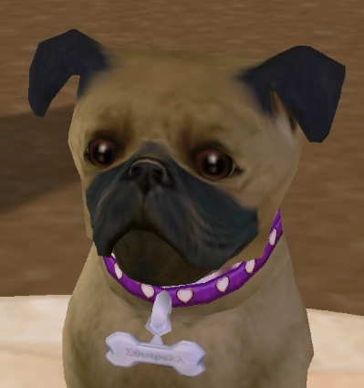 Henrietta Townsend is a pre-made playable dog residing in Whiskerton from The Sims 2: Pets for console. She lives with her owners, the Townsend couple, and their other dog, Fauntleroy. She is a Pug and is close to being friends with William, with a +31 relationship, while at a low +11 and +25 with Linda and Fauntleroy.