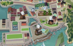 Iverstad is a neighborhood in Nordhaven, the world shipped with The Sims 4: Businesses & Hobbies. It contains 6 lots. It features a train station, where Sims can go train watching, or take a train to somewhere.