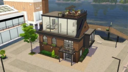 "Nestled right in front of the Iverstad markets, this is a great spot for any Sim looking to expand their social circle and business network. Just be careful to not fall in the canals if you're riding a bike."