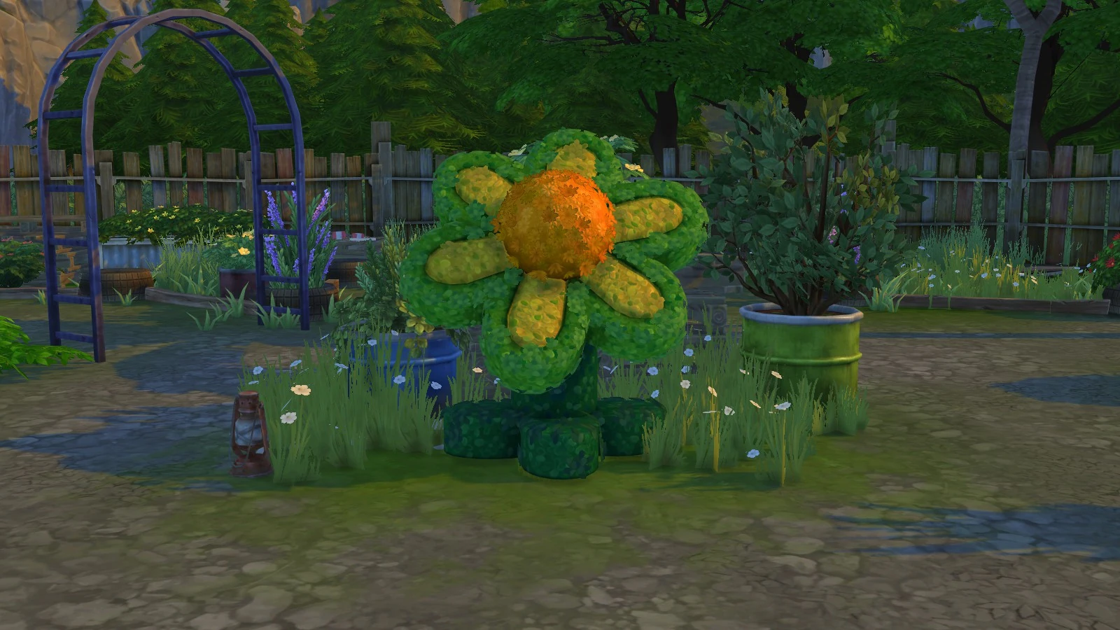 The topiary, located in the western-end garden of the neighborhood, it is an interactable object for Sims. They can: