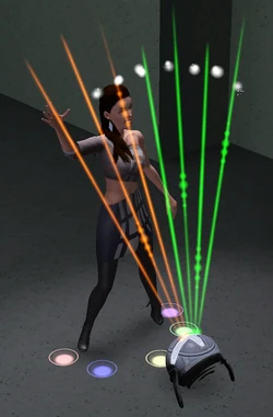 Laser rhythm-a-con is a musical instrument that was introduced in The Sims 3: Into the Future. It can be played by Sims aged teen or older.