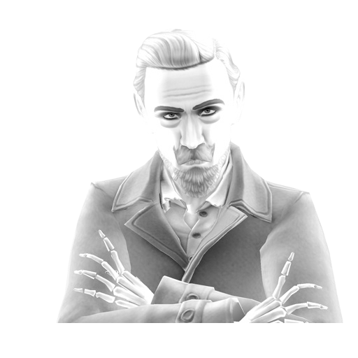 Layne Coffin is a pre-made playable Sim residing in Ravenwood, the world shipped with The Sims 4: Life & Death. He lives with his fiancée, Olive Specter, and her son, Nyon.