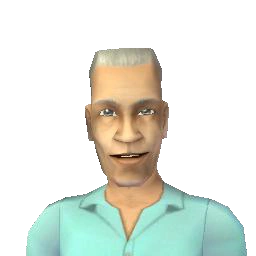 According to Leon's SimDNA in SimPE, his hair was red before it turned gray. According to his age data, he had 20 days left in the elder life stage when he died. Leon uses the 6th and 15th Maxis face templates in Create a Sim. The eyebrows, nose, and jaw use the 6th face template, while the ears, eyes, and mouth use the 15th template. Also, the face is slightly gaunter than on the default face. His SimDNA in SimPE shows that he carries the recessive allele for light blue eyes. Also, his dominant skin tone range is for light skin, while his recessive skin tone range is for medium skin. However, Leon's dominant and recessive alleles are for light skin.