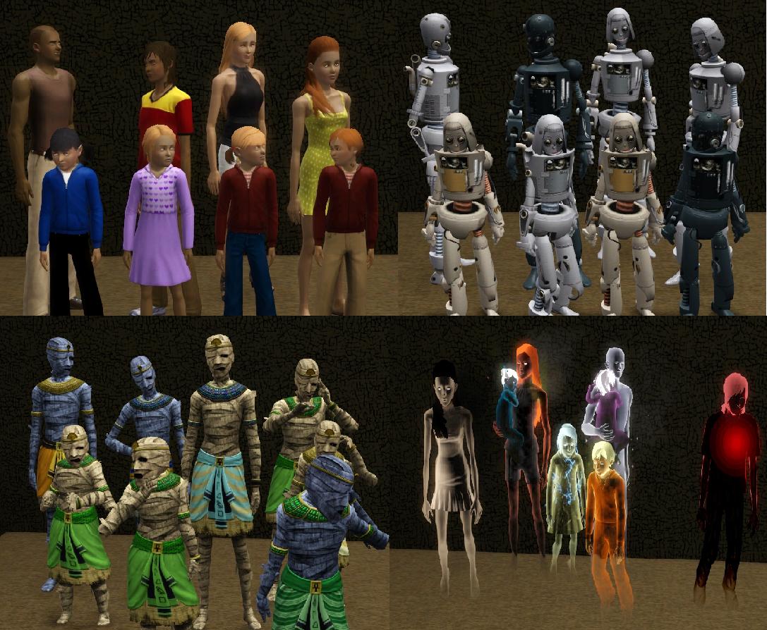 All of the life states from The Sims 2 up to Apartment Life except for normal Sims, ghosts, and mannequins.