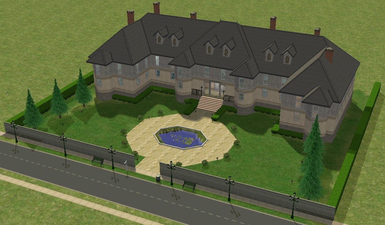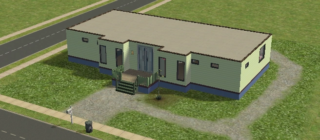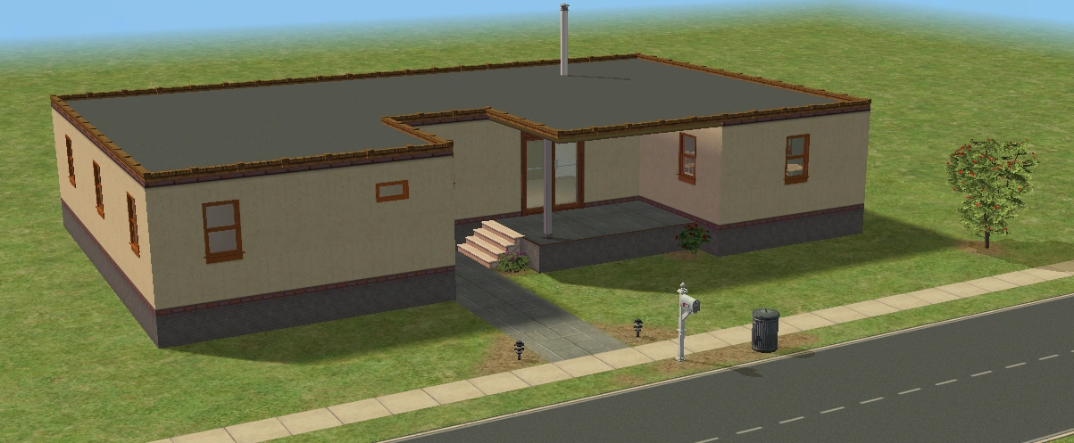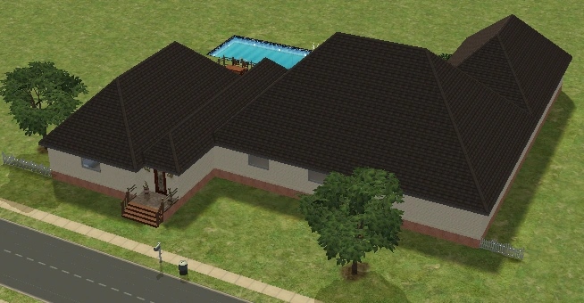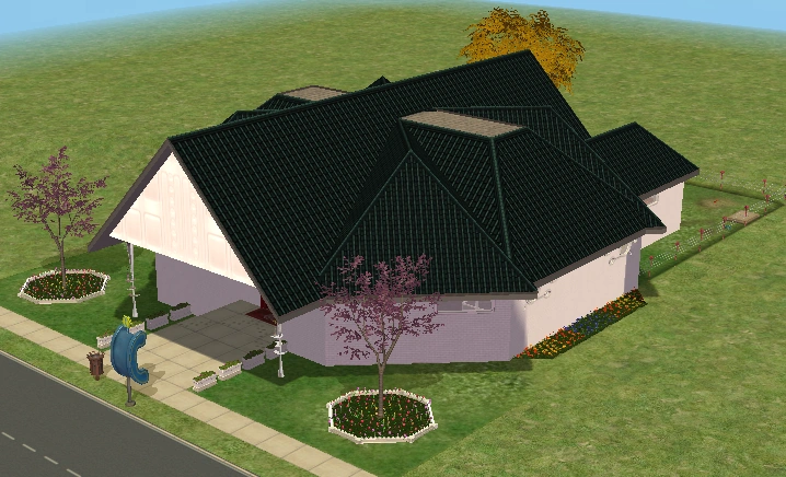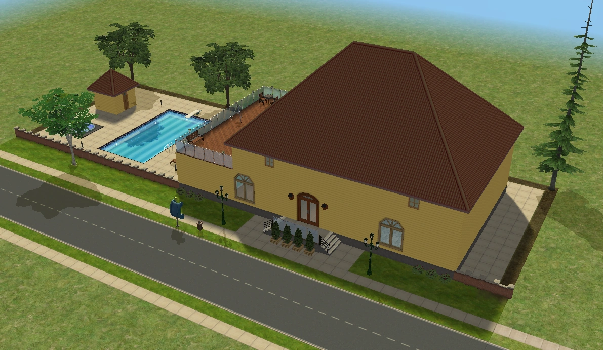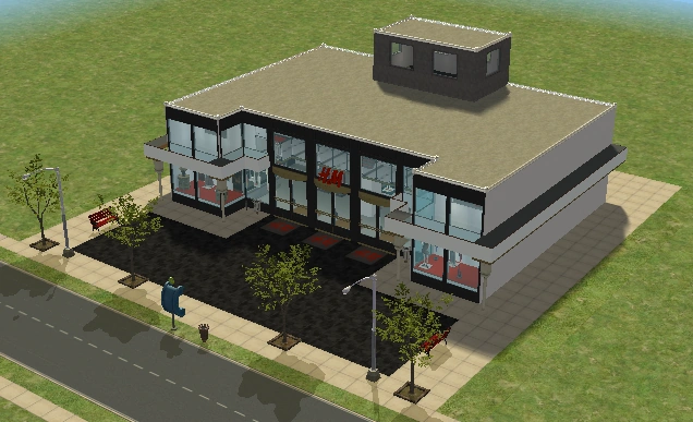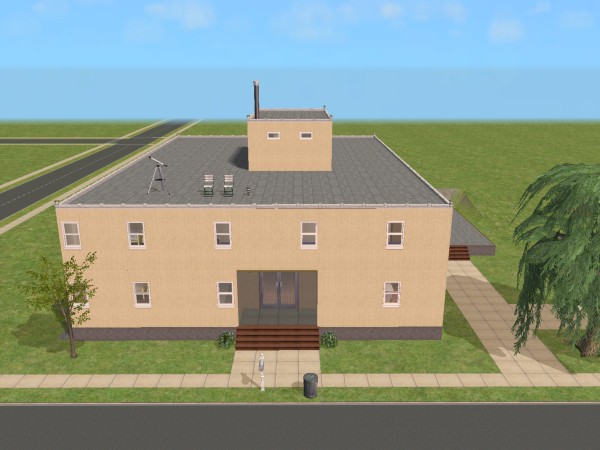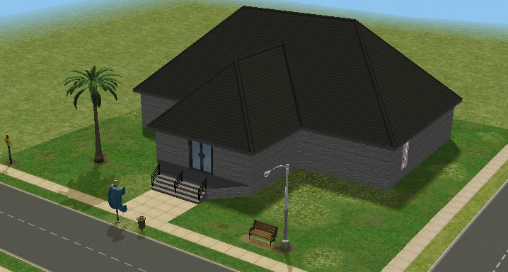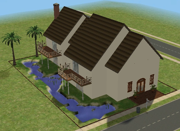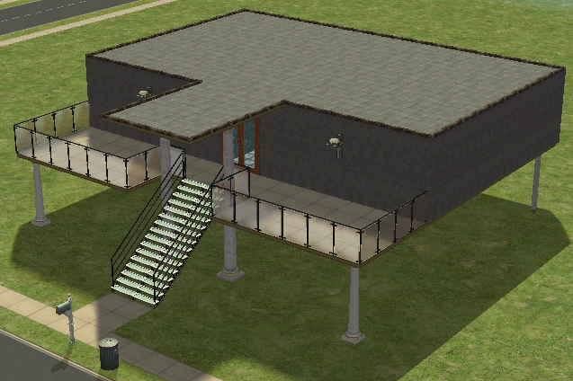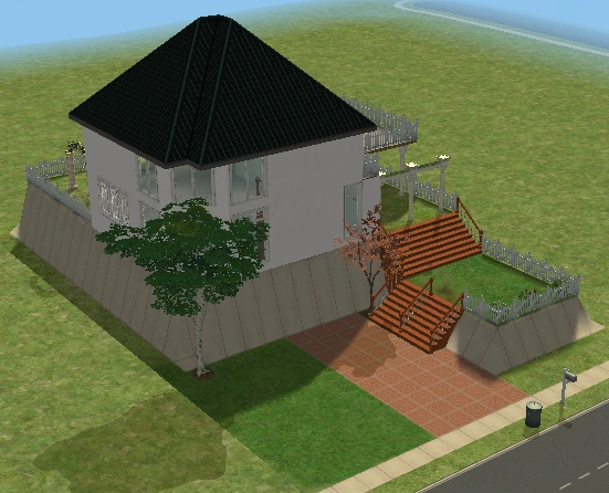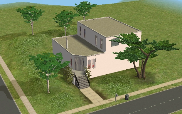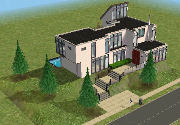 A lot created by MaxoidMonkey depicting a modern luxury home, this lot, along with 220 Wright Way, was presumably uploaded to The Sims 2 Exchange. In 2014, it was reuploaded by Missmaxoid following the shutdown of TheSims2.com. Judging by the lot terrain and street name, this lot is supposed to be placed at the end of Sim Lane, in the middle of the intersection of Lakeside and Sim.